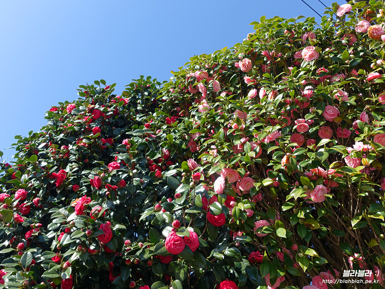 동백꽃이 만개한 나무를 만났어요~!