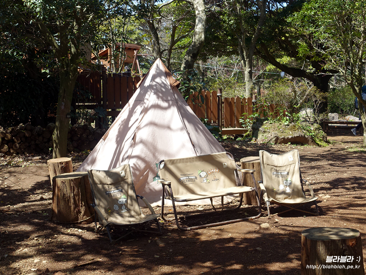 캠핑을 하고 있는 스누피를 만났어요.