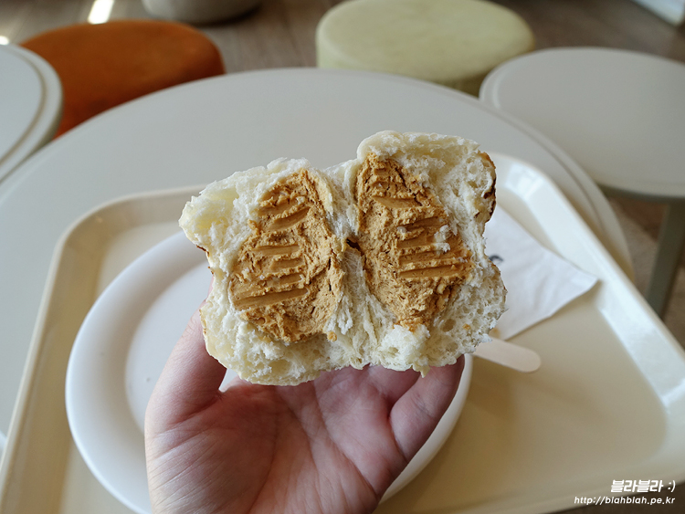 반을 가르니 이렇게 땅콩크림이 보이네요.