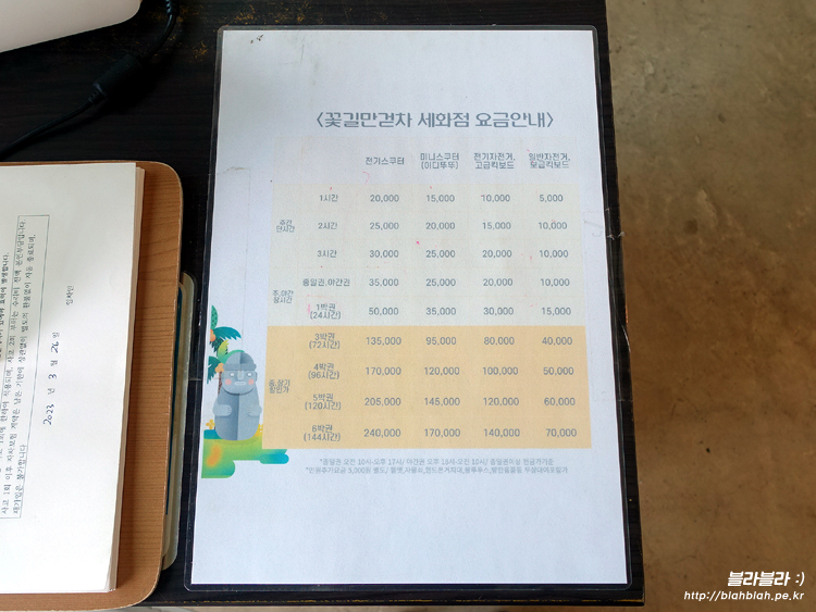 꽃길만걷차 자전거대여 요금입니다.