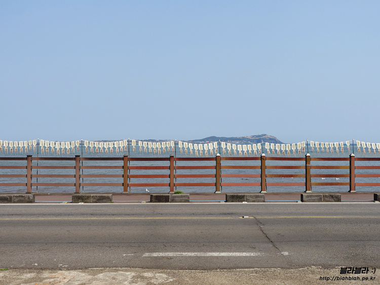 우도와 바다, 오징어 말리는 풍경