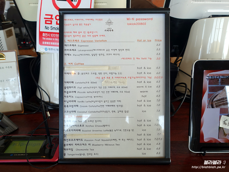 카페록록 메뉴와 가격입니다.