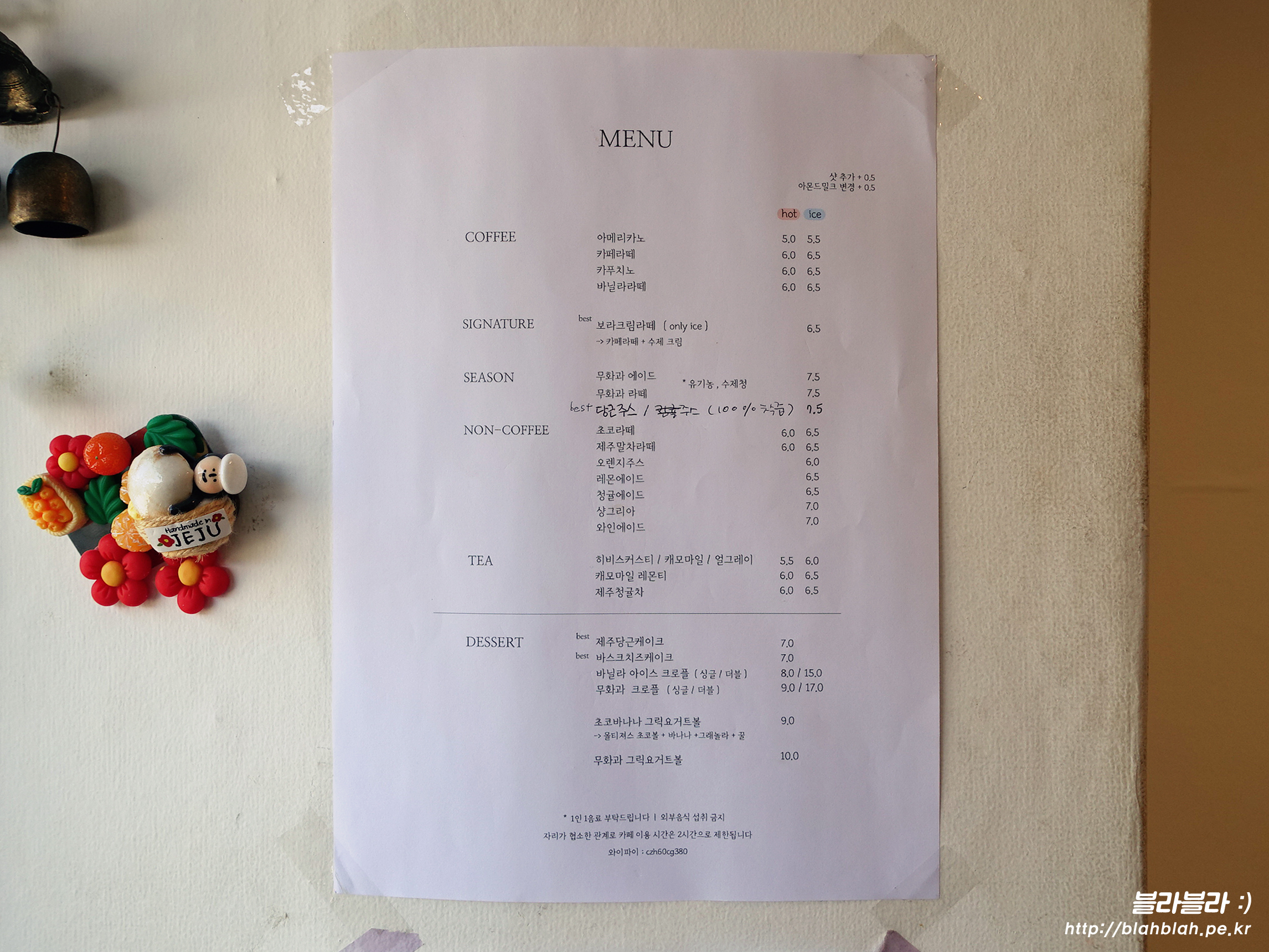 보라지붕 메뉴와 가격입니다.