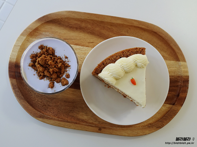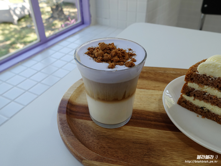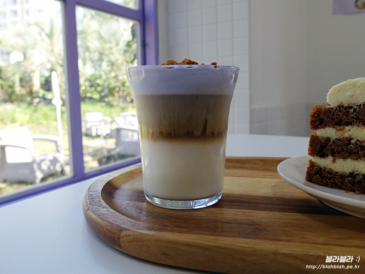 제주 함덕 카페 보라지붕, 보라크림라떼와 제주당근케이크
