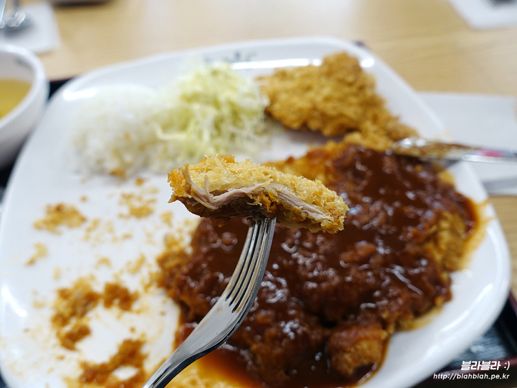 고기는 얇고 튀김옷이 더 두꺼운 돈까스구요.