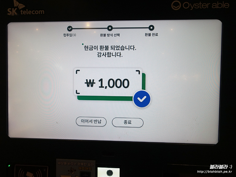 리유저블 컵 보증금 1,000원 환불받기 완료!